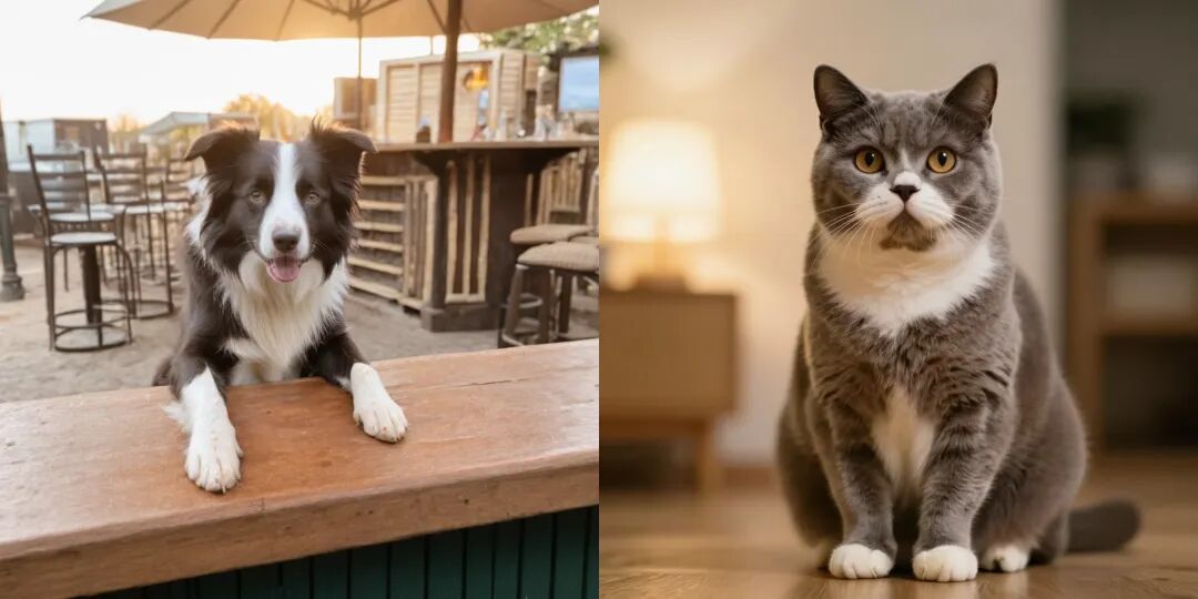 SkyReels-V4看一眼两张参考图:把狗和猫的毛色、身形全都扒下来,但摒弃了两张图的背景。