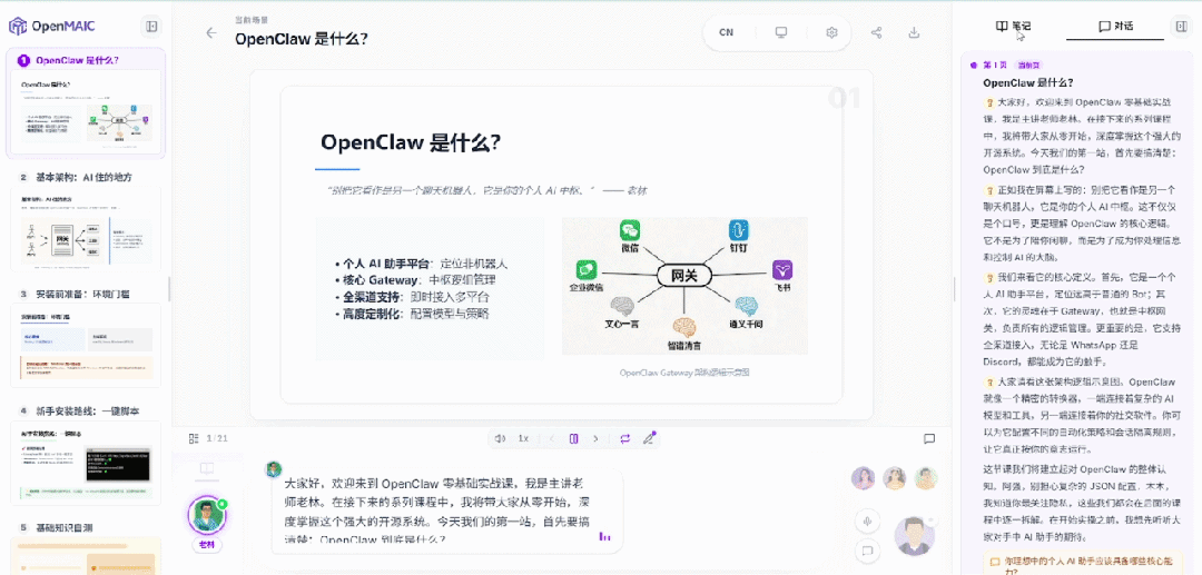 OpenMAIC 提出的那个「AI 同学」,恰好补上了这一块。它不是简单的问答助手,而是让学习过程变成一种有人一起参与的体验。