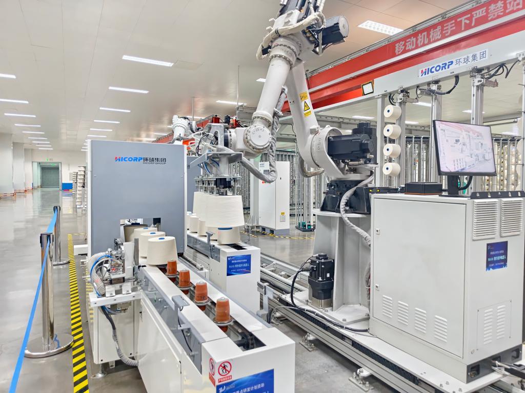 山东魏桥纺织科技有限公司生产车间的自动化设备。新华社记者邵鲁文 摄